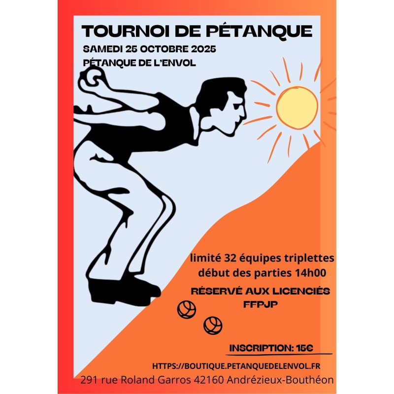 Samedi 25 octobre 2025 triplettes Pétanquodrome dès 14h00.
