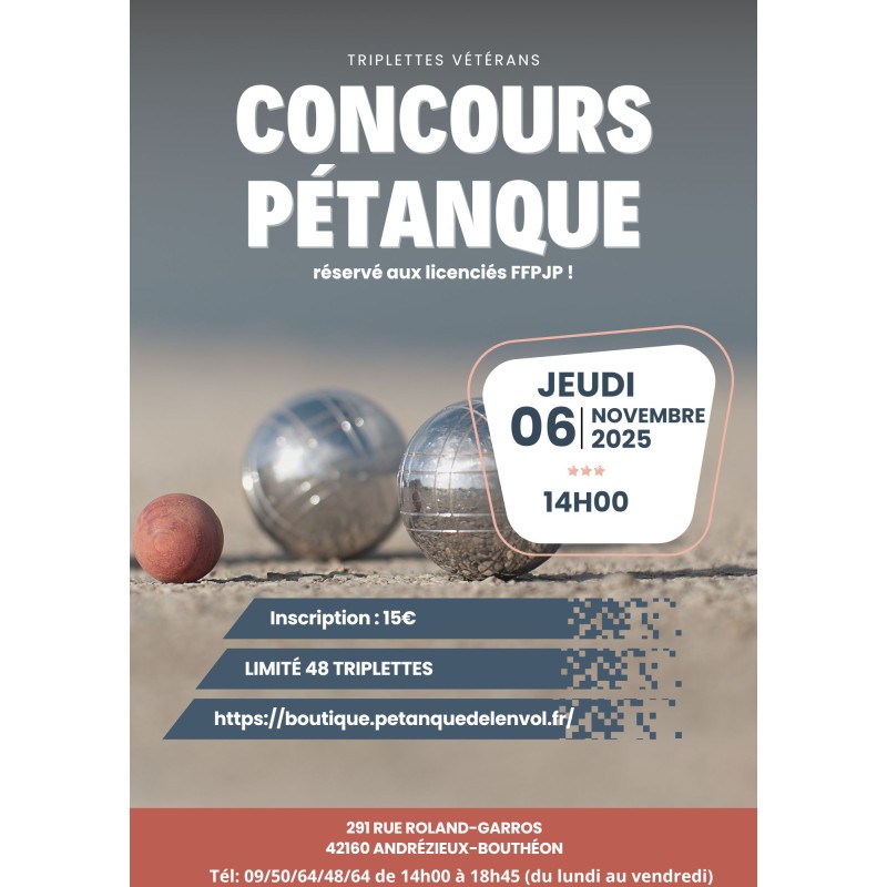 48 triplettes vétérans dès 14 h 00 pétanquodrome