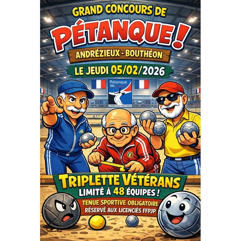 48 triplettes vétérans au 05/02/2026 Tenue Sportive Obligatoire (Bas sportif et haut Sportif) et licence 2026 actualisée