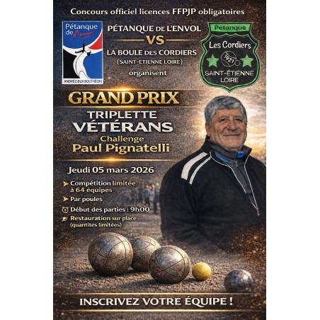 64 triplettes vétérans au 15/01/2026 Tenue Sportive Obligatoire (Bas sportif et haut Sportif) et licence 2026 actualisée dès 9h00